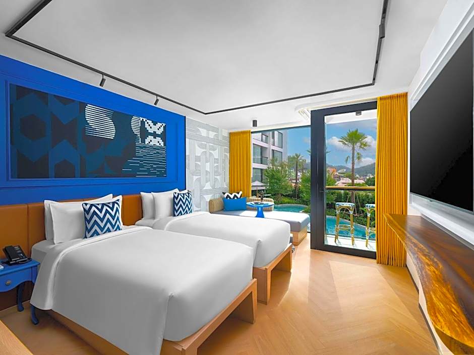 Ein Spaziergang zum Pool offenbart ein ganzjähriges Außenparadies, das ausschließlich Erwachsenen vorbehalten ist — ein luftiger Ort, um zu nippen, zu schwimmen und Patongs sonnenverwöhnte Tage zu genießen, ganz ohne die Kleinen.